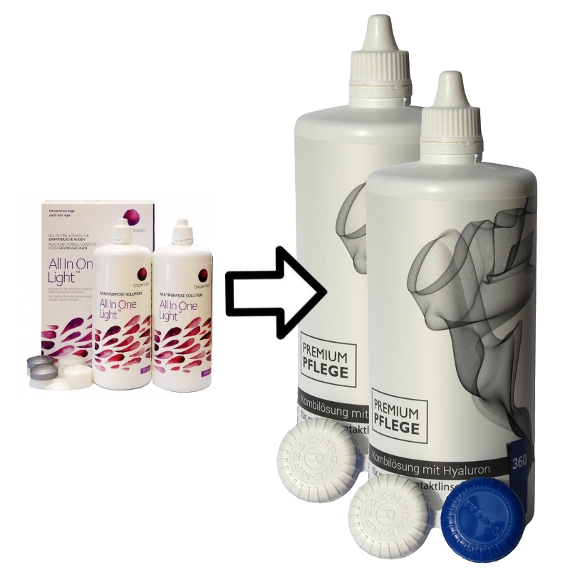 Aus Cooper All In One Light wird Premium Pflege Kombilösung mit Hyaluron 1 bis 6 mal a - 360ml / 1x Behälter