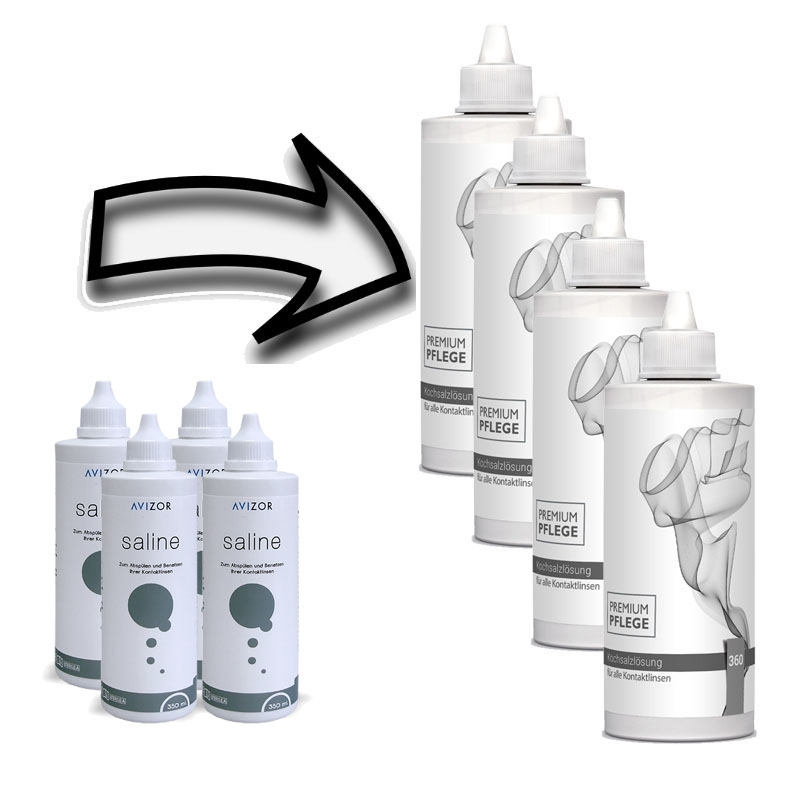StartseitePflegemittel ErsatzAus Avizor Saline Kochsalzlösung 4 x 350ml wird Premium Pflege Kochsalzlösung 4 x 360ml